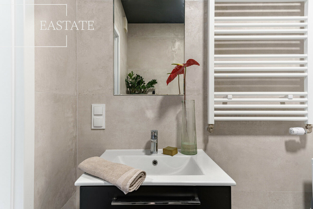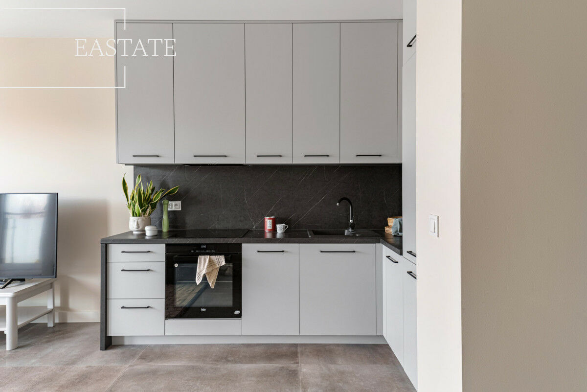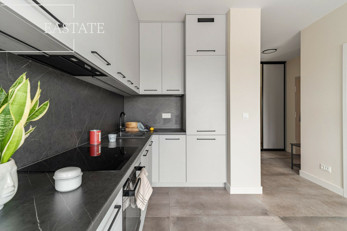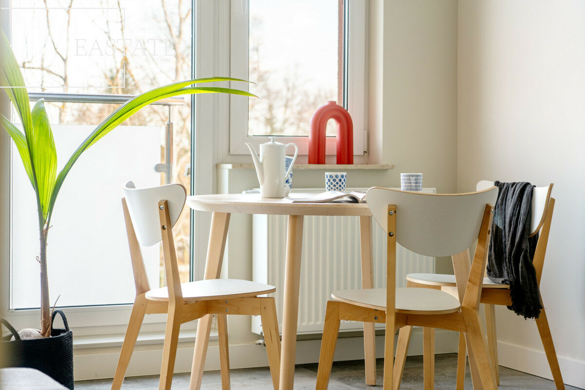 Mieszkanie zostało urządzone w nowoczesnym stylu, z dbałością o estetykę i funkcjonalność. Duże okna zapewniają dostęp do naturalnego światła i sprawiają, że wnętrze jest przestronne i jasne.